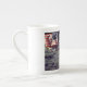 jolie porcelaine, bonne dimension effet brillant bien dans l'ensemble. Le motif et les couleurs sont réussis.Je trouve néanmoins dommage de ne pas occuper tout l'espace avc le motif car la partie rouge au dos de la tasse est trop présente et pas intéressante visuellement.