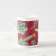 jolie porcelaine, bonne dimension effet brillant bien dans l'ensemble. Le motif et les couleurs sont réussis.Je trouve néanmoins dommage de ne pas occuper tout l'espace avc le motif car la partie rouge au dos de la tasse est trop présente et pas intéressante visuellement.