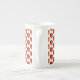 jolie porcelaine, bonne dimension effet brillant bien dans l'ensemble. Le motif et les couleurs sont réussis.Je trouve néanmoins dommage de ne pas occuper tout l'espace avc le motif car la partie rouge au dos de la tasse est trop présente et pas intéressante visuellement.