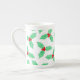 jolie porcelaine, bonne dimension effet brillant bien dans l'ensemble. Le motif et les couleurs sont réussis.Je trouve néanmoins dommage de ne pas occuper tout l'espace avc le motif car la partie rouge au dos de la tasse est trop présente et pas intéressante visuellement.