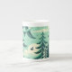 Tasse En Porcelaine Motif turquoise de la forêt verte et des oiseaux