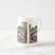 jolie porcelaine, bonne dimension effet brillant bien dans l'ensemble. Le motif et les couleurs sont réussis.Je trouve néanmoins dommage de ne pas occuper tout l'espace avc le motif car la partie rouge au dos de la tasse est trop présente et pas intéressante visuellement.