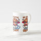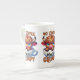 jolie porcelaine, bonne dimension effet brillant bien dans l'ensemble. Le motif et les couleurs sont réussis.Je trouve néanmoins dommage de ne pas occuper tout l'espace avc le motif car la partie rouge au dos de la tasse est trop présente et pas intéressante visuellement.