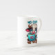 jolie porcelaine, bonne dimension effet brillant bien dans l'ensemble. Le motif et les couleurs sont réussis.Je trouve néanmoins dommage de ne pas occuper tout l'espace avc le motif car la partie rouge au dos de la tasse est trop présente et pas intéressante visuellement.