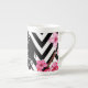 jolie porcelaine, bonne dimension effet brillant bien dans l'ensemble. Le motif et les couleurs sont réussis.Je trouve néanmoins dommage de ne pas occuper tout l'espace avc le motif car la partie rouge au dos de la tasse est trop présente et pas intéressante visuellement.