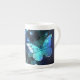 Fabuleux, brillant, bleu et jaune, papillon de nuit sur arrière - plan foncé.