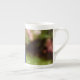 jolie porcelaine, bonne dimension effet brillant bien dans l'ensemble. Le motif et les couleurs sont réussis.Je trouve néanmoins dommage de ne pas occuper tout l'espace avc le motif car la partie rouge au dos de la tasse est trop présente et pas intéressante visuellement.