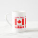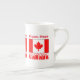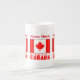 Tasse de porcelaine à os personnalisée avec des lettres écrêtées de neige lisant CANADA et se trouvent sous le drapeau canadien. Ajoutez un nom pour personnaliser le look ou créer un cadeau. Le drapeau canadien a un centre blanc avec une feuille d'érable rouge à l'intérieur. L'une à droite et l'autre à gauche de la zone blanche sont deux rouges. Un cadeau de ménage réfléchi. Parfait pour les réunions de famille, la fête du Canada, les clubs et les groupes de voyage.