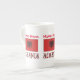 Bone China tasse présente le drapeau albanais avec le mot ALBANIA écrit ci-dessous, dans les couleurs rouge et noir du drapeau. Ajoutez votre nom, en lettres rouges, dans l'espace prévu pour un look personnel. Ou, créez un cadeau customisé en ajoutant le nom de quelqu'un d'autre. Amusants à utiliser lors d'une réunion de famille, d'un groupe de voyage ou d'un club. Partagez votre patrimoine et vos ancêtres.