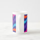 jolie porcelaine, bonne dimension effet brillant bien dans l'ensemble. Le motif et les couleurs sont réussis.Je trouve néanmoins dommage de ne pas occuper tout l'espace avc le motif car la partie rouge au dos de la tasse est trop présente et pas intéressante visuellement.