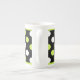 Coupe de porcelaine en os blanc, avec des graphismes en bande noire audacieuse, avec de grands pois blancs et chartreuse, au milieu. Des bandes de chartreuse branchées, en haut et en bas, bordent le motif à points polka. Customisez d'ajouter le texte que vous voulez. Mignonne associée à la cafetière ou à la théière et au linge de maison assortis.