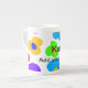 jolie porcelaine, bonne dimension effet brillant bien dans l'ensemble. Le motif et les couleurs sont réussis.Je trouve néanmoins dommage de ne pas occuper tout l'espace avc le motif car la partie rouge au dos de la tasse est trop présente et pas intéressante visuellement.
