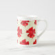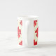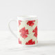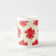 jolie porcelaine, bonne dimension effet brillant bien dans l'ensemble. Le motif et les couleurs sont réussis.Je trouve néanmoins dommage de ne pas occuper tout l'espace avc le motif car la partie rouge au dos de la tasse est trop présente et pas intéressante visuellement.