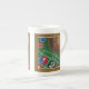 jolie porcelaine, bonne dimension effet brillant bien dans l'ensemble. Le motif et les couleurs sont réussis.Je trouve néanmoins dommage de ne pas occuper tout l'espace avc le motif car la partie rouge au dos de la tasse est trop présente et pas intéressante visuellement.