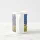 jolie porcelaine, bonne dimension effet brillant bien dans l'ensemble. Le motif et les couleurs sont réussis.Je trouve néanmoins dommage de ne pas occuper tout l'espace avc le motif car la partie rouge au dos de la tasse est trop présente et pas intéressante visuellement.