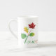 jolie porcelaine, bonne dimension effet brillant bien dans l'ensemble. Le motif et les couleurs sont réussis.Je trouve néanmoins dommage de ne pas occuper tout l'espace avc le motif car la partie rouge au dos de la tasse est trop présente et pas intéressante visuellement.