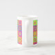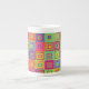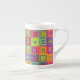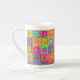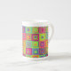 jolie porcelaine, bonne dimension effet brillant bien dans l'ensemble. Le motif et les couleurs sont réussis.Je trouve néanmoins dommage de ne pas occuper tout l'espace avc le motif car la partie rouge au dos de la tasse est trop présente et pas intéressante visuellement.