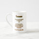 jolie porcelaine, bonne dimension effet brillant bien dans l'ensemble. Le motif et les couleurs sont réussis.Je trouve néanmoins dommage de ne pas occuper tout l'espace avc le motif car la partie rouge au dos de la tasse est trop présente et pas intéressante visuellement.