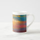 jolie porcelaine, bonne dimension effet brillant bien dans l'ensemble. Le motif et les couleurs sont réussis.Je trouve néanmoins dommage de ne pas occuper tout l'espace avc le motif car la partie rouge au dos de la tasse est trop présente et pas intéressante visuellement.