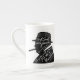 Cette tasse de porcelaine tendre comporte la silhouette du premier ministre britannique légendaire Winston Churchill avec son cri célèbre aux jeunes de sa nation.
