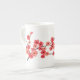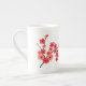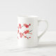 Cette tasse de porcelaine tendre est décorée d'une branche des fleurs de cerisier rouges et de corail.