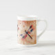 Cette tasse de porcelaine tendre de Flourish de libellule comporte ma libellule d'aquarelle sur un arrière - plan posé par art numérique.