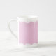 L'équilibre blanc croquant de dentelle d'oeillet encadre le dessus et le bas de cette tasse douce de porcelaine tendre. Personnalisez cette tasse avec votre texte nommé ou préféré.