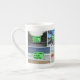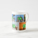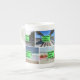 jolie porcelaine, bonne dimension effet brillant bien dans l'ensemble. Le motif et les couleurs sont réussis.Je trouve néanmoins dommage de ne pas occuper tout l'espace avc le motif car la partie rouge au dos de la tasse est trop présente et pas intéressante visuellement.