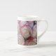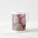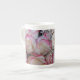 jolie porcelaine, bonne dimension effet brillant bien dans l'ensemble. Le motif et les couleurs sont réussis.Je trouve néanmoins dommage de ne pas occuper tout l'espace avc le motif car la partie rouge au dos de la tasse est trop présente et pas intéressante visuellement.