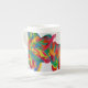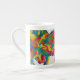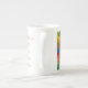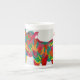 jolie porcelaine, bonne dimension effet brillant bien dans l'ensemble. Le motif et les couleurs sont réussis.Je trouve néanmoins dommage de ne pas occuper tout l'espace avc le motif car la partie rouge au dos de la tasse est trop présente et pas intéressante visuellement.