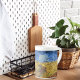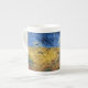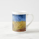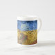 A fine art Bone China Mug with the post-impressionist painting, Wheatfield with Crows (1890), by Vincent van Gogh (1853-1890). Considered his last painting, but art historians differ on this. A dirt path through the fields with a blue sky and a flock of crows.