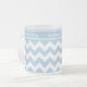 Une chic Mug en verre dépoli pour vous personnaliser, avec un motif de chevrons bleu et blanc. Si vous préférez la tasse sans texte, vous pouvez facilement la customiser en supprimant le texte et en déplaçant le motif du chevron vers le haut jusqu'à ce que la bande bleu clair disparaisse.
