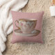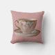 Tasse et soucoupe de thé rose avec le coussin de