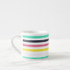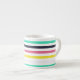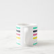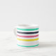 Une tasse Espresso colorée conçue avec un motif rayé. La glacière est principalement blanche avec des rayures horizontales en noir, rose, jaune et turquoise.