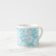 Unique mug expresso à motif carnation bleu et blanc aqua. Uniquement conçu et produit par Sarah Trett.
