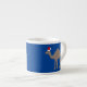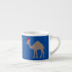 Cette magnifique tasse à expresso présente une image art numérique d'un mignon chameau dromédaire couleur sable brun avec de belles cils longs et une seule bosse sur le dos. Le chameau est habillé pour fêter Noël avec un chapeau de Père Noël rouge et blanc sur la tête. Le chameau figure dans la Bible et est un symbole traditionnel de Noël.