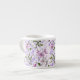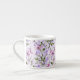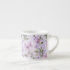 Une tasse à espresso ornée de délicates fleurs roses, violettes et blanches sur un fond lavande doux, ajoutant un charme élégant et romantique aux rituels du café et faisant un choix raffiné et prêt à offrir pour les amateurs d'art floral et de décoration de cuisine stylée.