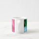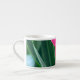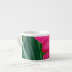 Espresso dans le jardin - la photo originale de MaeFlowers sur cette Espresso Cup aux couleurs vives est un closep de fleurs roses contre des feuilles verts, avec une touche de ciel bleu clair qui se projette à travers. Sur la photo, les pétales de fleurs sont largement ouverts. Le centre de la fleur est un ivoire jaune doux qui se fond en rose à ses bords extérieurs rouillés.