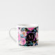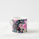 Coupe de café Espresso Rose Rose Monogrammé. Joli Monogramme floral Fleurs d'aquarelle rose, accentuées par le feuillage vert sur un arrière - plan noir. Entièrement personnalisable et transférable. L'artiste Yulia Podlinnova.