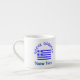Personalized design shows the Flag of Greece and the words GREEK GODDESS above, in blue letters on two sides of an espresso cup. Add a name underneath to personalize your cup or create a customized gift. Fun for Greek-Americans, Greek Canadians, or anyone with Greek heritage, ancestry or culture. YIASSOU! The flag is blue and white stripes with a blue cross on a white background in the upper left area.