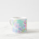 Créez une coupe espresso holographique avec monogramme et design irisé dans des couleurs pastel unicorne arc-en-ciel.