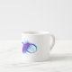 Infinity symbole with a beautiful feather painted in purple and blue bright colors on white background