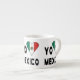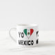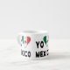 La tasse de café Espresso porte un drapeau mexicain en forme de cœur au lieu du mot AMOUR ou AMO. Le design indique YO AMO MEXICO, ou J'AIME LE MEXIQUE, et s'affiche sur trois côtés. Le drapeau est vert, blanc et rouge avec un aigle au centre. Amusant pour le Cinco de Mayo. Cadeau de pendaison de crémaillère idéal.