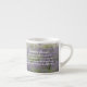 Coupe d'Espresso qui présente l'image d'un joli jardin d'herbes de lavande avec les paroles inspirantes de la prière de sérénité. L'image est imprimée sur le côté avant de la tasse seulement. Fait un cadeau réfléchi pour la famille et les amis!