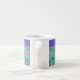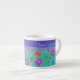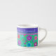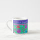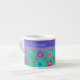 Joli Espresso Mug à personnaliser, avec un motif de fleurs en violet, turquoise, rose et orange sur un arrière - plan Jade Green, d'un collage de papier peint à la main par Judy Adamson. Vous pouvez facilement modifier la couleur de l'arrière - plan à l'aide du bouton Modifier.