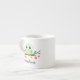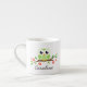 Tasse mignonne et personnalisée de café express comportant une illustration d'un petit hibou vert se reposant sur une branche avec le feuille vert et les fleurs rouges. Ajoutez un nom ou tout autre texte. Conception mignonne et d'amusement pour des filles et des femmes.