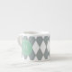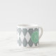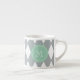 Tasse Expresso Motif de harlequin de blanc gris, monogramme vert