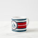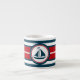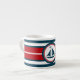 Design nautique avec décoration de voilier en forme ronde sur rouge, bleu et blanc rayé arrière - plan