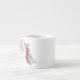 Coupe espresso blanche avec une image, des deux côtés, d'un bas de Noël rayé rouge et blanc rempli de jouets et orné de saint, et une image croquis bleu du Père Noël dans son traîneau tiré par huit minuscules rennes. Voir la bocal à bonbons, flacon, tasse, lanceur, plaque en papier, verre à balles, théière et dessous de verre. Voir l'ensemble de la collection Holiday Mug dans le FOOD/BEV | Section Plats.