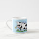 Tasse Expresso Vache mignonne en vert dessin animé sur le terrain